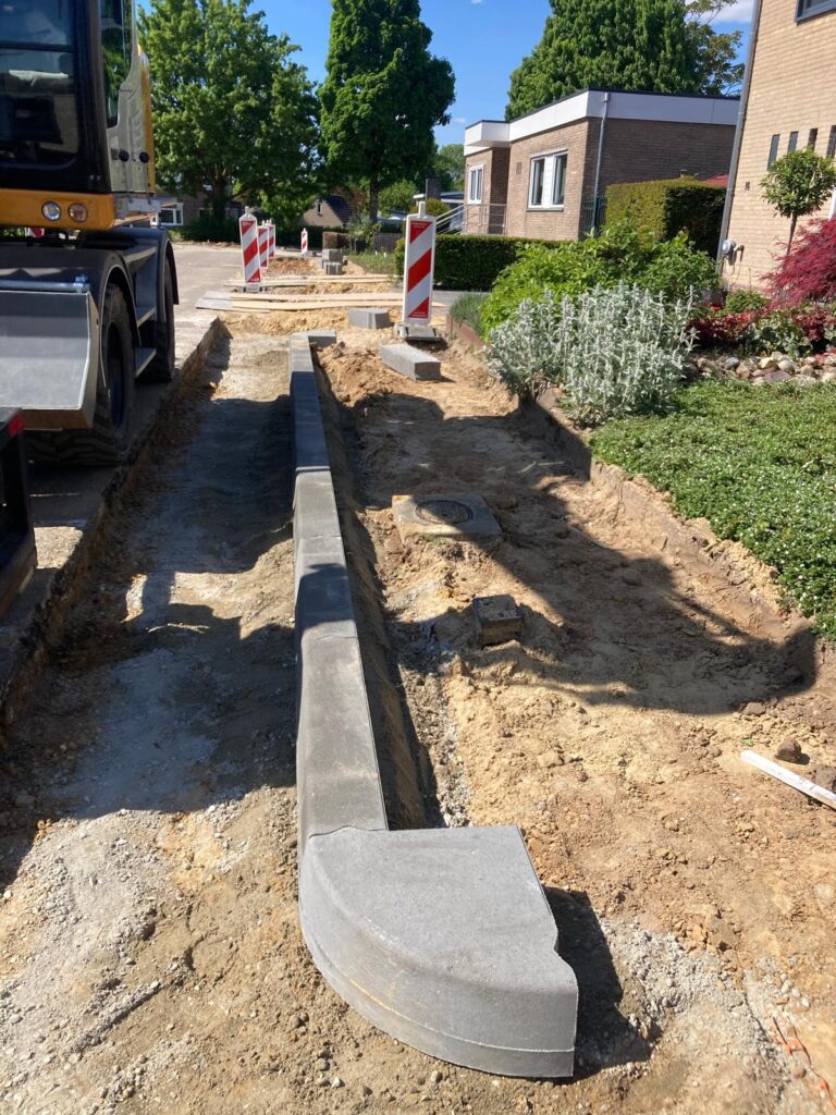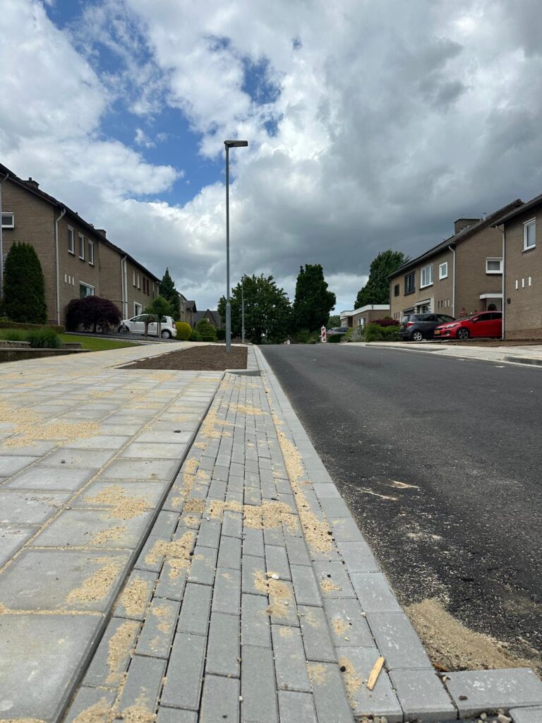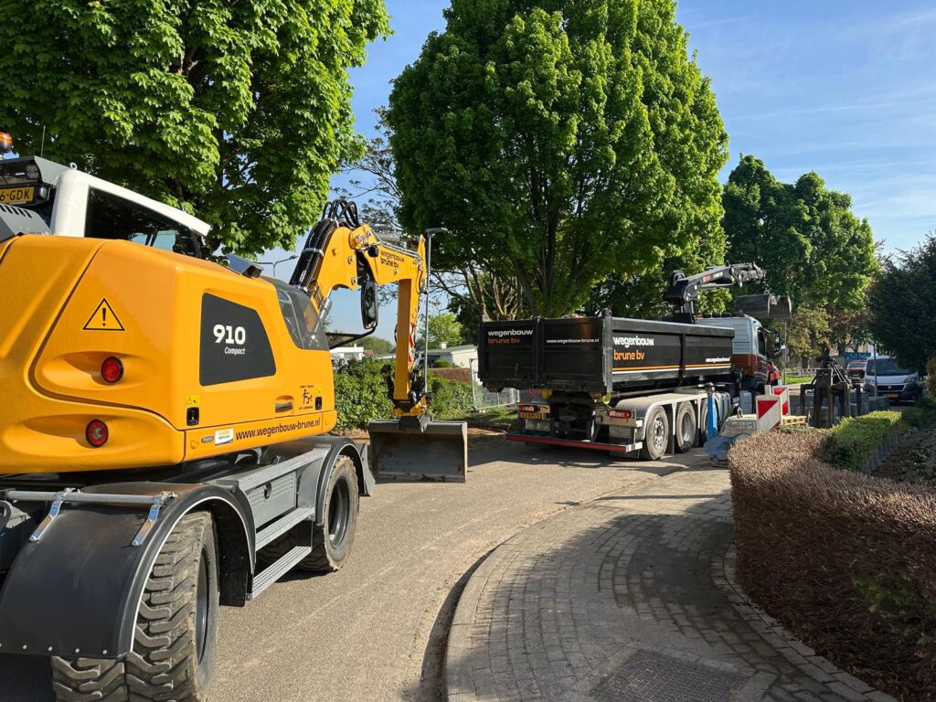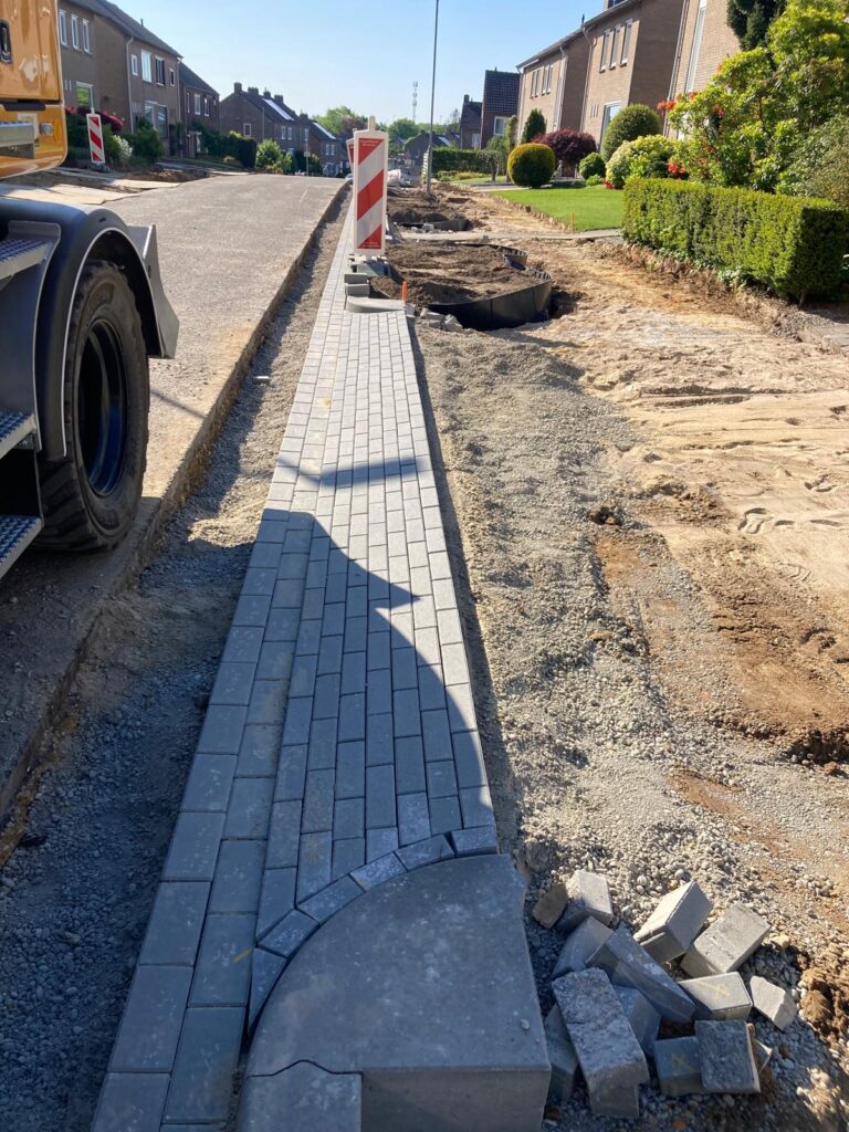 Alle elementverhardingen aan één zijde van de weg zijn inmiddels verwijderd en afgevoerd. Het werk is uitgezet en zullen spoedig zetten met het aanbrengen van de eerste nieuwe elementbelijningen.
