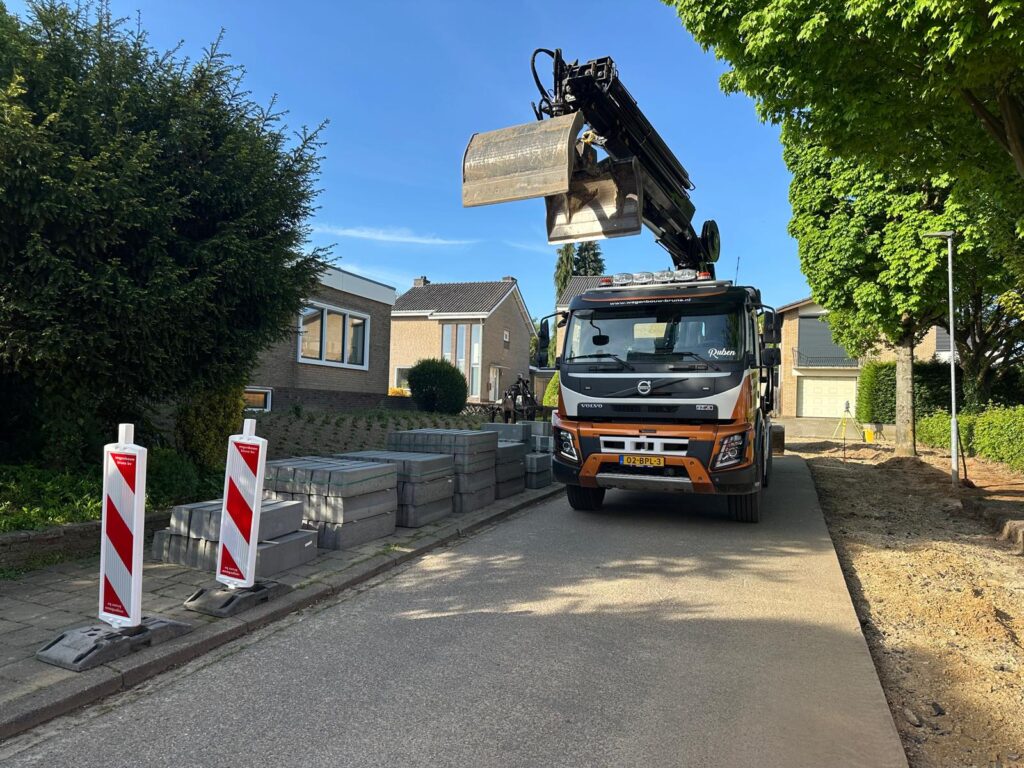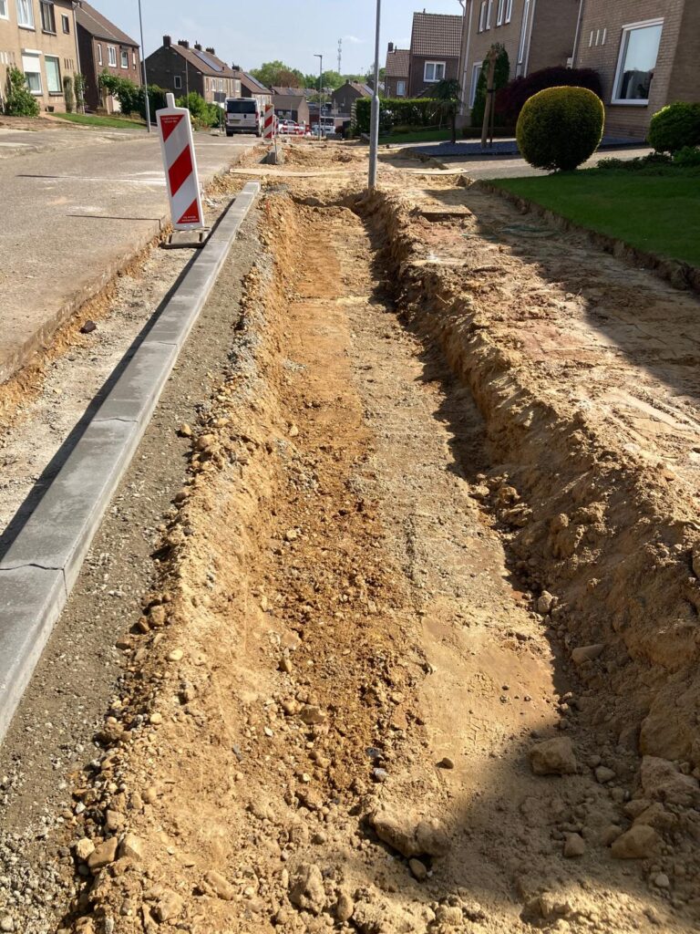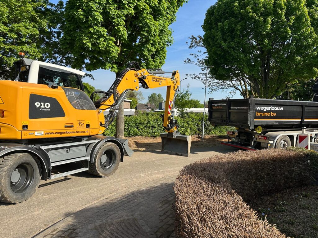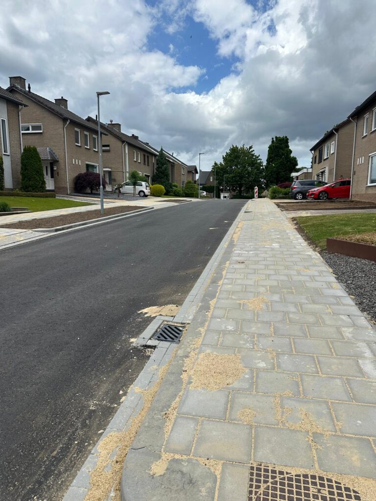 Alle elementverhardingen aan één zijde van de weg zijn inmiddels verwijderd en afgevoerd. Het werk is uitgezet en zullen spoedig zetten met het aanbrengen van de eerste nieuwe elementbelijningen.